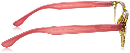 Product Description High profile readers feature the ever flattering wayfarer shape, with a sleek tortoise front, gold metallic sheen on the inside and colored arms. Available in three color options: pink, teal, or black. 0