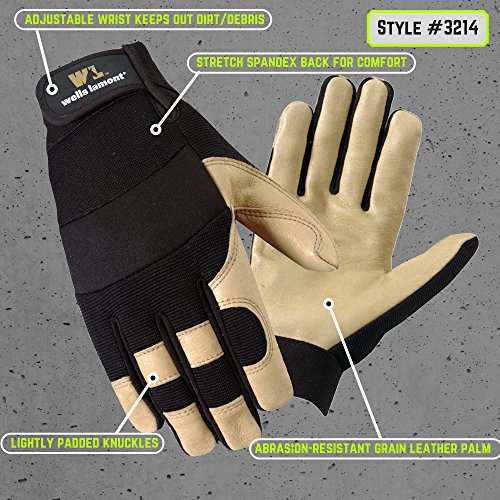 Men's Hi-Dexterity Leather Work Gloves, Ultra Comfort, Stretch Fit, Large (Wells Lamont 3214L)