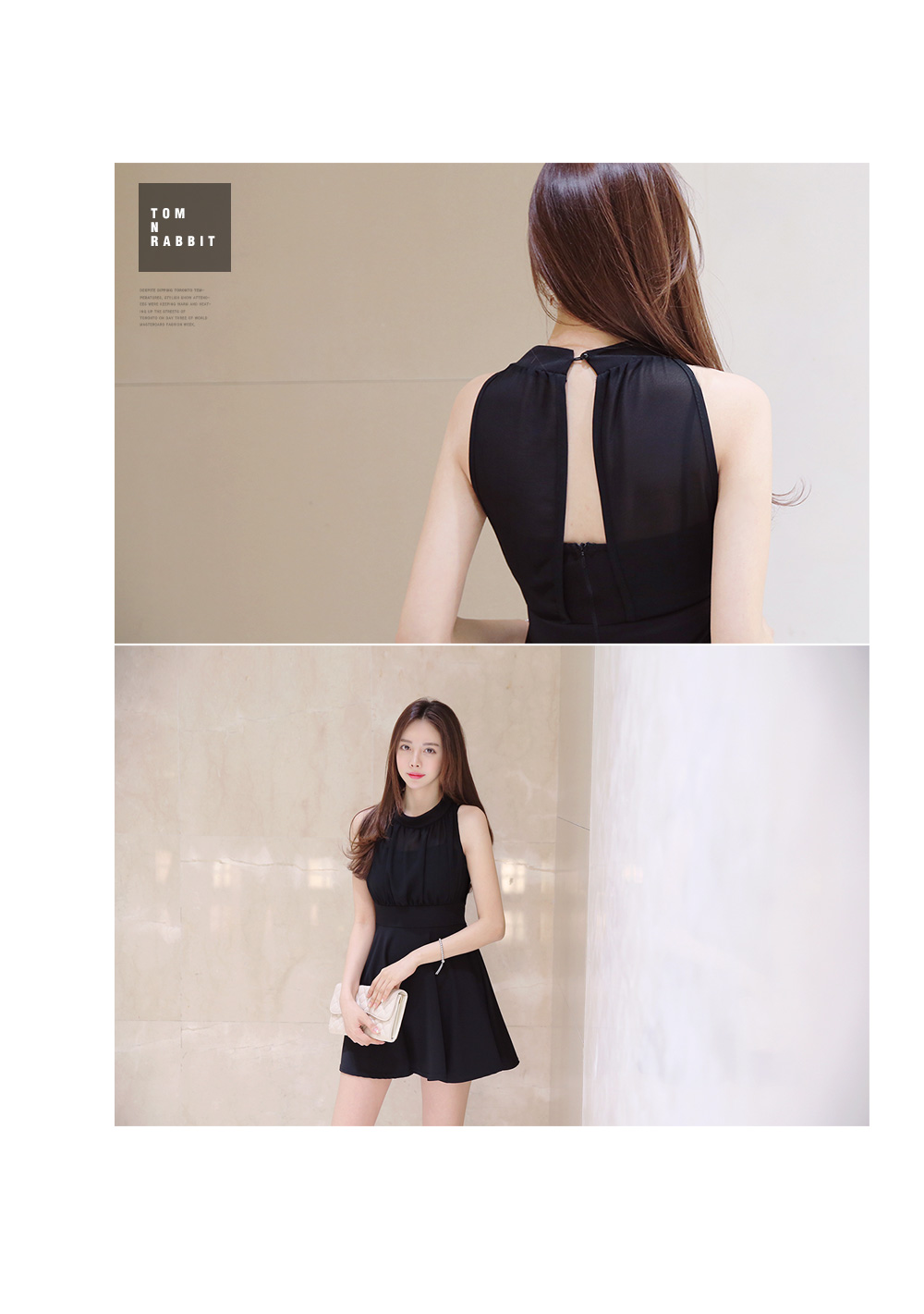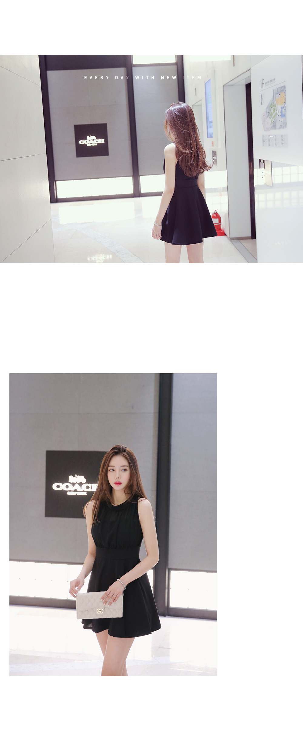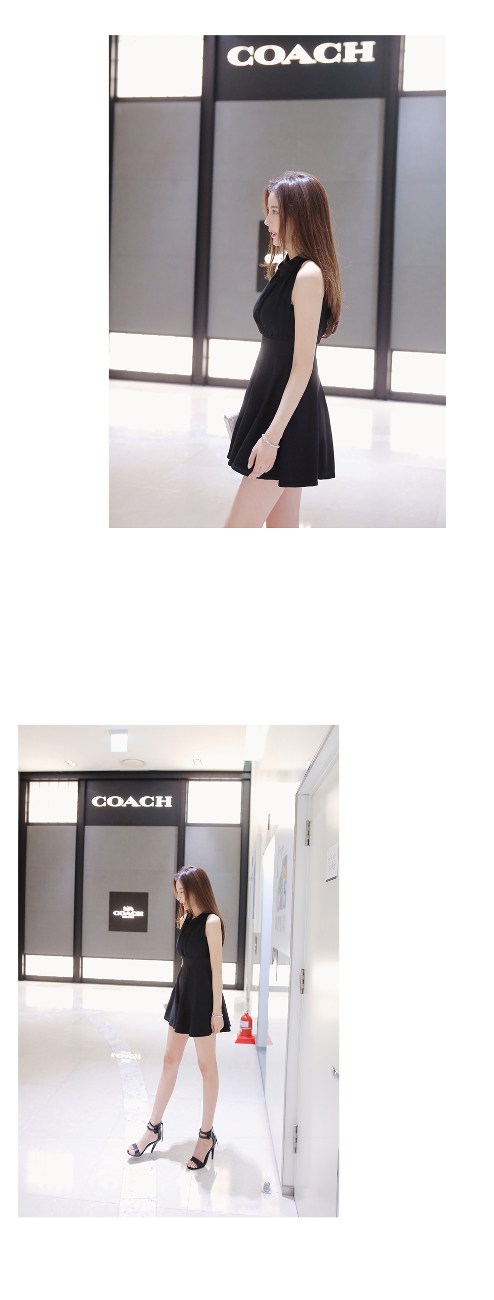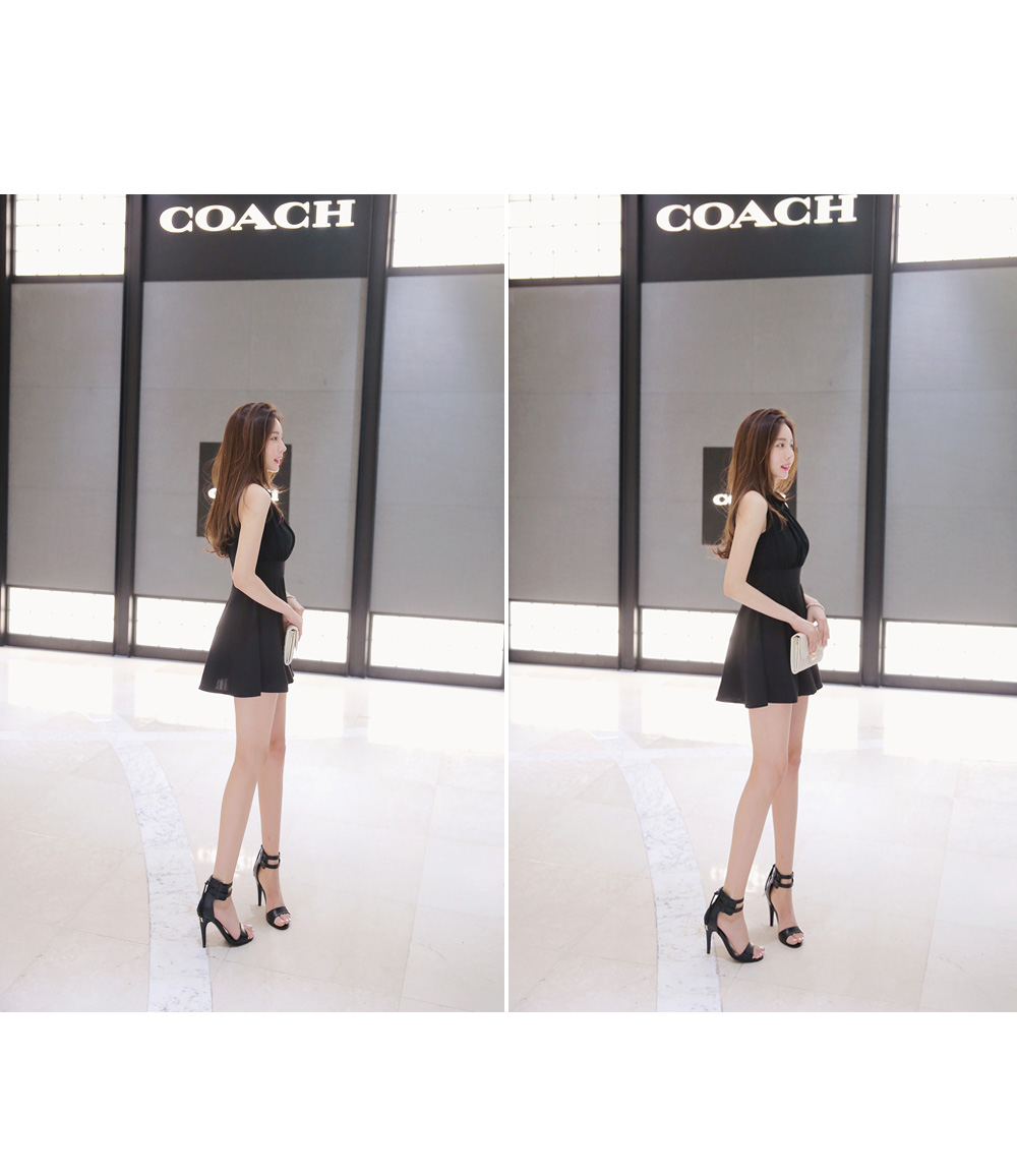 깔끔한 바디라인이 돋보이는 홀터넥 원피스를 소개해드려요.