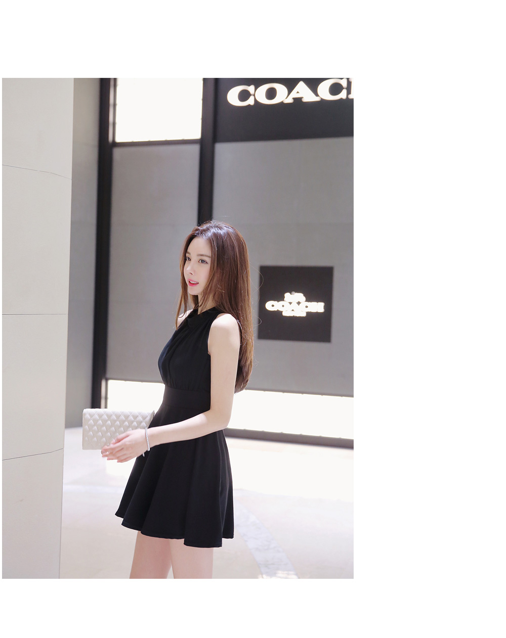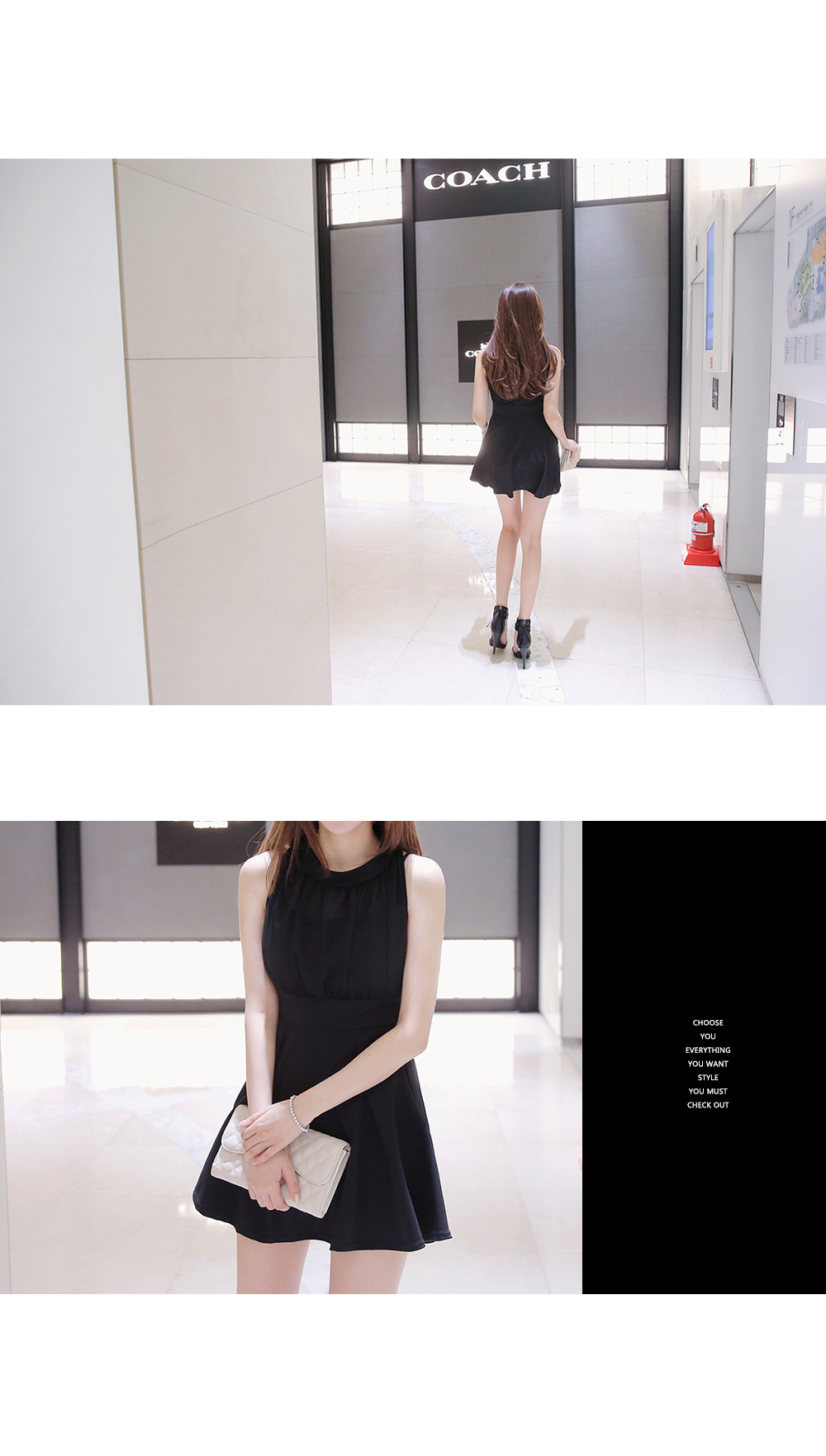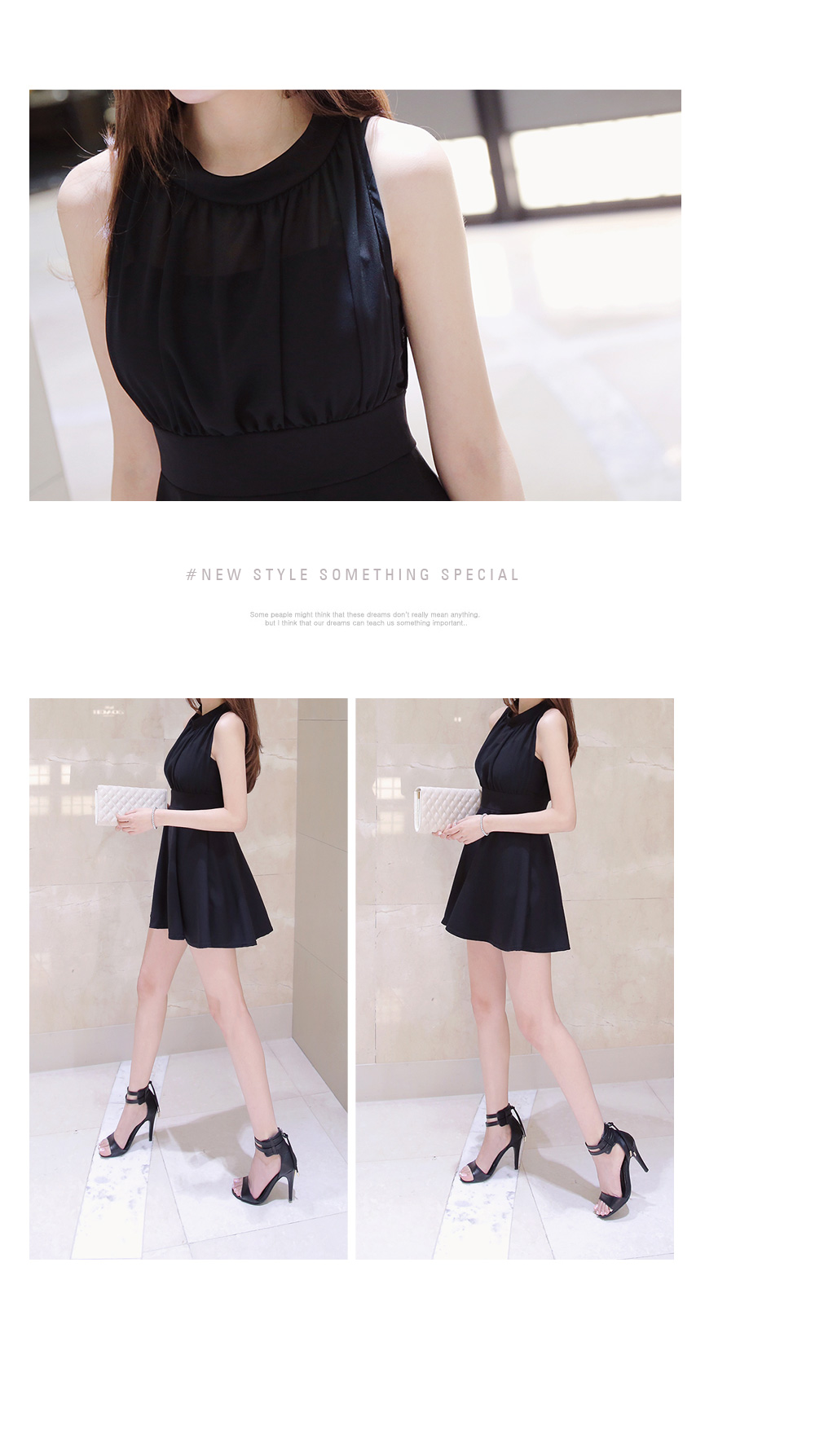 깔끔한 바디라인이 돋보이는 홀터넥 원피스를 소개해드려요.