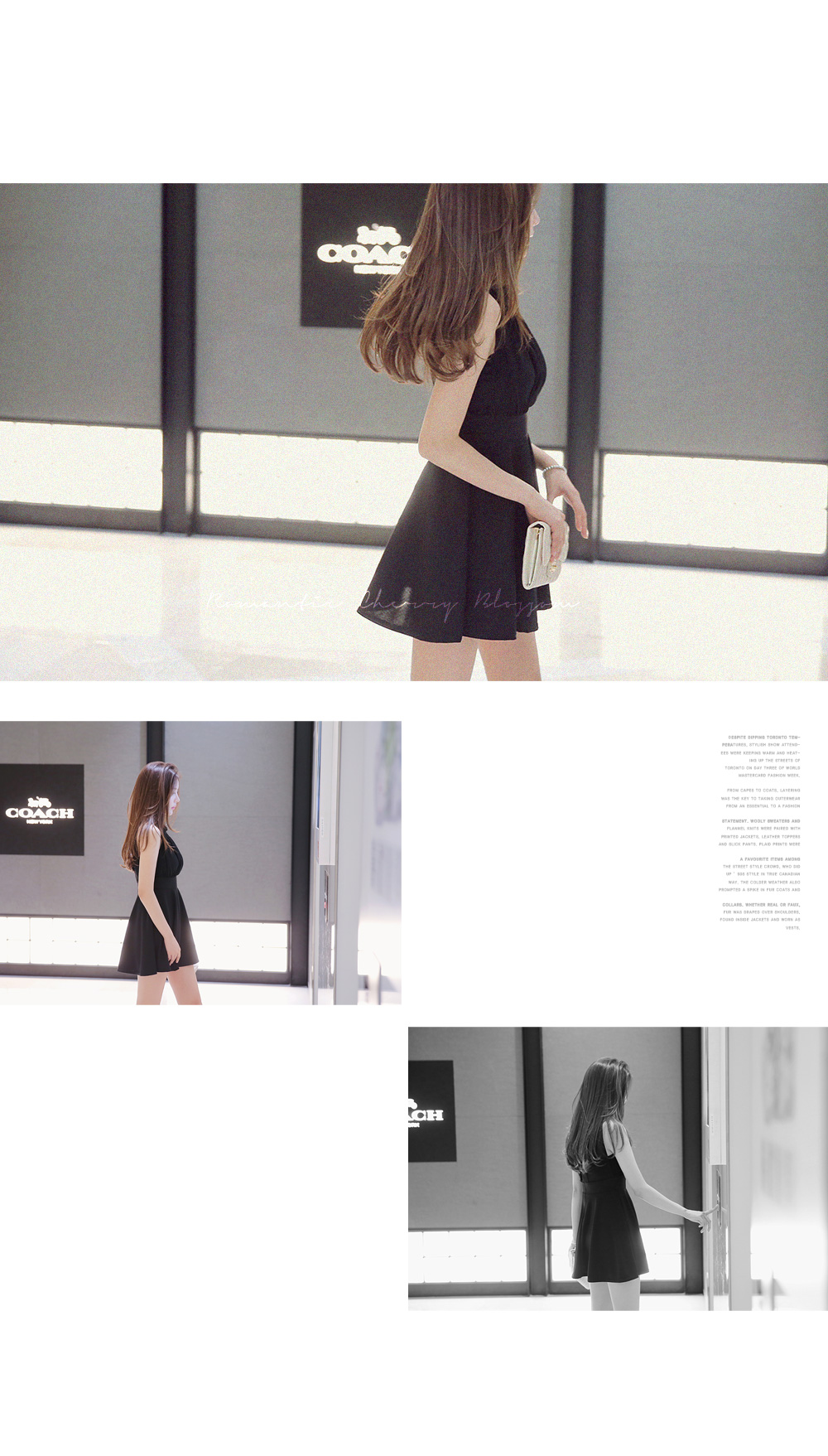 바스트부분의 시스루와 백라인의 트임라인으로 은근한 섹시미를 연출해 주는 원피스인데요.