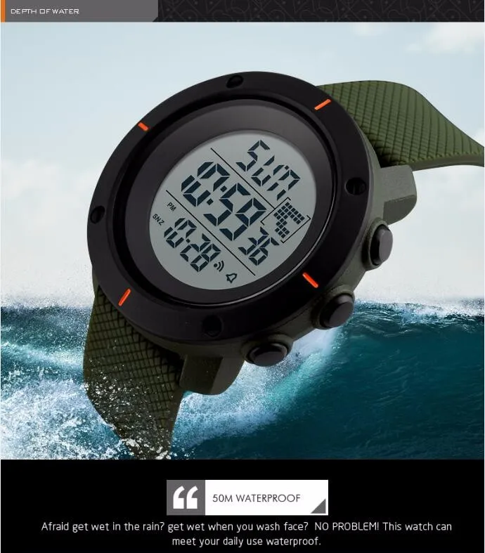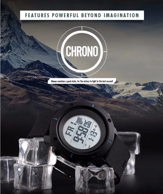 Feature:Water Resistant,LED display,Auto Date,Complete Calendar,Diver,Shock Resistant,Swim,Alarm,Chronograph