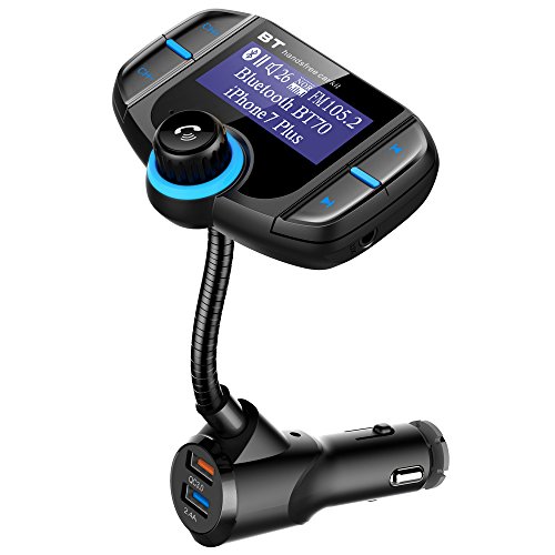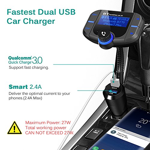 Car Bluetooth FM Transmitter with Quick Charge 3.0 USB Charger On Off Switch Wireless Handsfree Calling Car Kit TF card MP3 Player Radio Audio Adapter Modulator Aux Input Large Screen - CHGeek