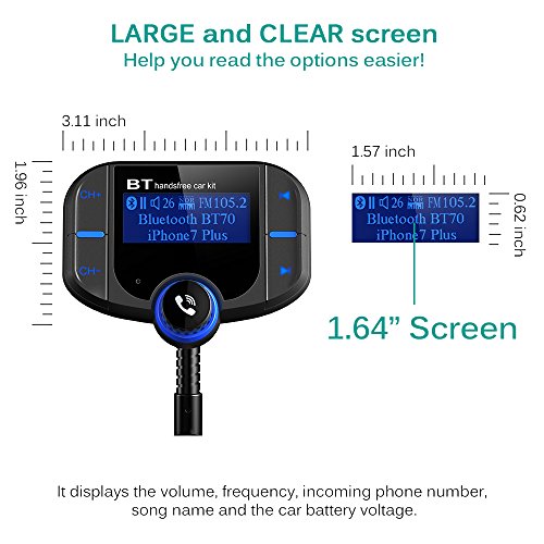 Large Screen & Easy Operate: The 1.64 inch LCD display tells you the the frequency, volume, incoming phone number, current song information and car battery voltage. The big buttons help you operate it easier