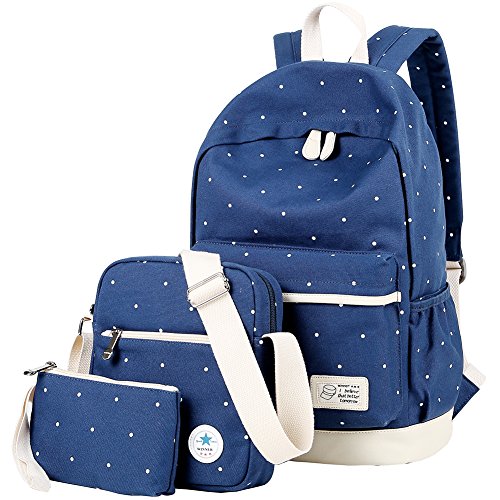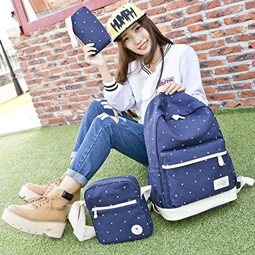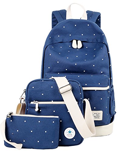 -. Brand : Mygreen -. Feature : Material: High quality and lightweight Canvas Quantity: 3PCS Laptop Bag + Shoulder Bag + Purse/Pencil Case / Size: Laptop Bag: 11*17*6.5in (L*H*W) Shoulder Bag: 8*9*3 in (L*H*W) Purse: 6.7* 4.7 in (L*W) / High volume backpack with polka dot decorate the whole bag and leather binding in the front. / TheLaptop bag can accommodate a 14-inch-computer / Unique design straps ease the pressure on the shoulder, and The cushion with high permeability material, have never cover the sweat when you carry it a long time -. ProductGroup : Apparel -. ProductTypeName : LAGE -. Title : Mygreen Casual Lightweight Canvas Laptop Bag Shoulder Bag School Backpack