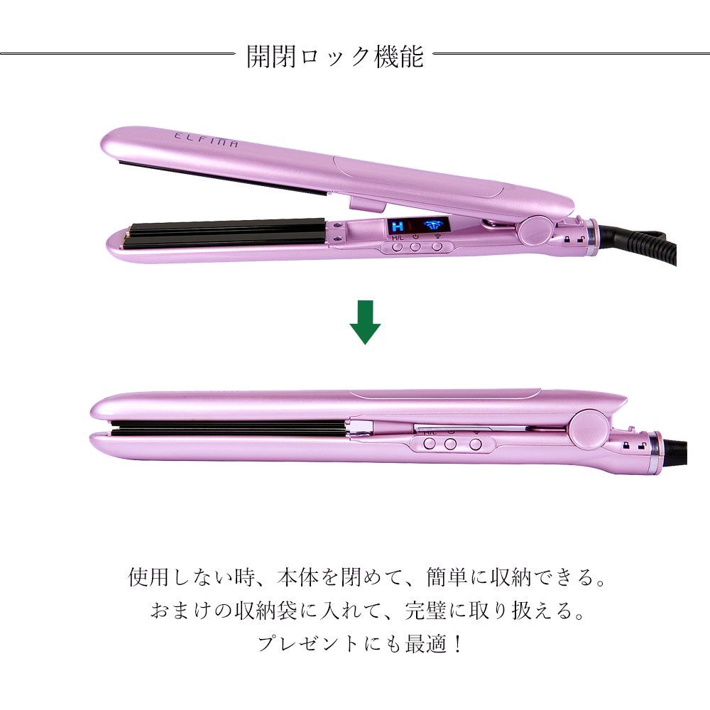● The body is an arcuate design, it is a multifunctional hair iron that makes straight style and also simple curl style.