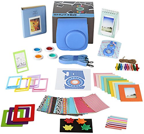Fujifilm Instax Mini 9 COBALT Mini 9 Camera Accessories Bundle, 14 PC Set Includes: Camera Case + Strap, 2 Albums, 4 Color Filters, Selfie lens, Magnets + Hanging + Creative Frames, stickers, Gift Box
