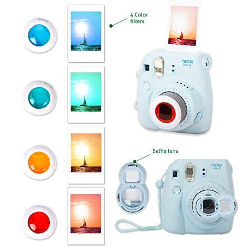 LENSES: Another essential piece of this Fujifilm Instax Mini 9 or 8/8+ Film Camera Accessories is Lenses. This contains 4 COLOR LENSES with Filter Lens Yellow, Blue, Green & Red with Hot SELFIE LENS. The special lens can do awesome close-ups that catch you in the ideal way. These 4 color filter lens are for you to change the photo color. It is great for best photographic impact, you can snap the photo & transfer it to Instagram or Facebook.