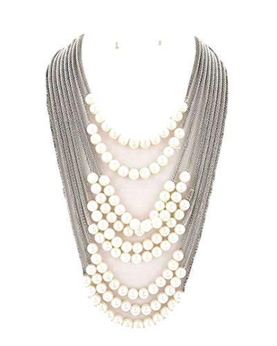 -. Binding : Jewelry -. Brand : Recyclebabe Necklace Sets -. Department : womens -. Feature : Multi Strand Necklace Evening Dressy Casual Stud Earrings / Simulated Ivory Cream Pearl Silver Tone / 17.50 inches plus Ext Matching Earrings with Posts Almost .50 inch Diameter Large / Fast and Free Shipping in USA / Shipped in a Gift Box -. Label : NA -. Manufacturer : NA -. ProductGroup : Jewelry -. ProductTypeName : FASHIONNECKLACEBRACELETANKLET -. Publisher : NA -. Studio : NA -. Title : Pearl Necklace Earrings Set C56 Ivory Cream Multi Strand Silver Tone