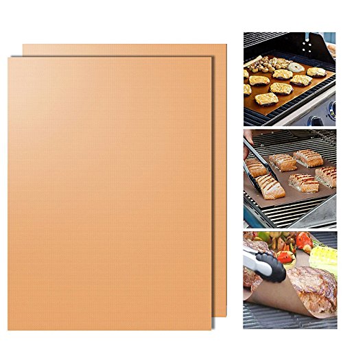 Grill Mat 100% Non-stick BBQ Grill Mats -FDA-Approved, PFOA Free, Reusable and Easy to Clean15.75 x 13 Inch- Set of 2(Gold)