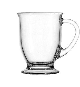 Studio : Anchor Hocking Publisher : Anchor Hocking Binding : Kitchen Product Description Use this set of Anchor Hocking cafe mugs for everything from throwing a dinner party to enjoying a cup of hot coffee with breakfast. These glass coffee mugs are classically designed with tapered glass, an elegantly curved handle and a slightly flared lip. The mugs are made with a minimum of 10% reclaimed glass, so this glass mug set is good for the environment as well as your decor. Dishwasher and microwave safe, these mugs are versatile and easy to clean. 5-1/4" L x 4" W x 5" H, with a 16 ounce capacity 0