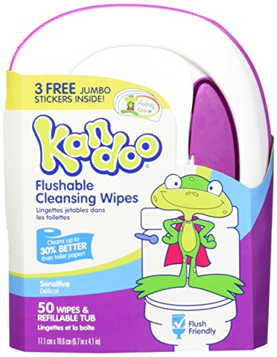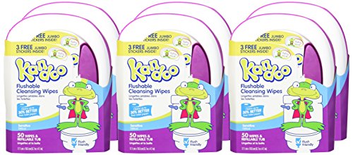 Kandoo Flushable Biodegradable Training and Kids Cleansing Wet Wipes with Moisturizing Lotion Refillable Tub, Sensitive, 50 Count, 6 Pack