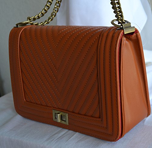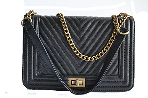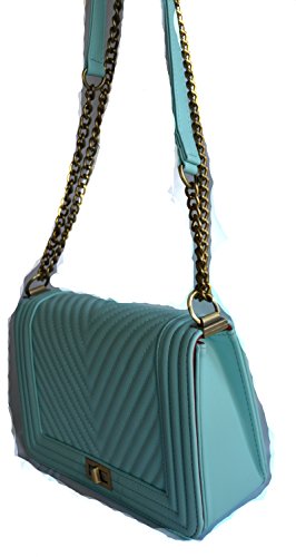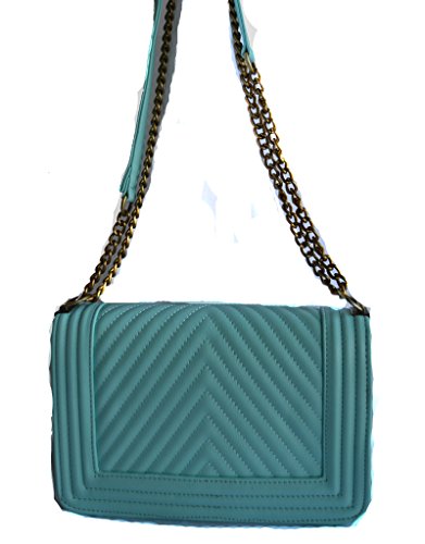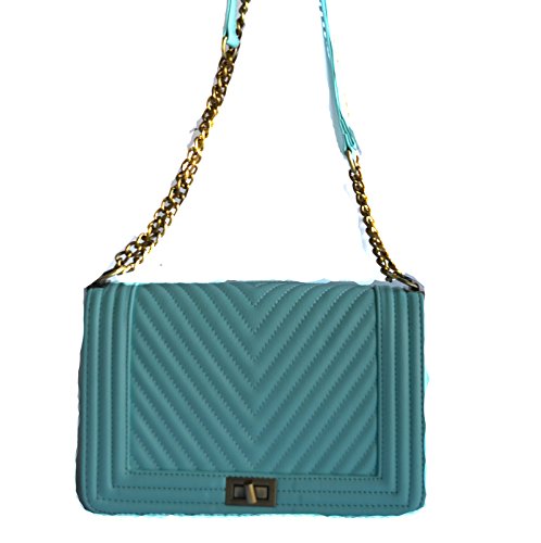 -. Brand : Stony West -. Department : womens -. Feature : PU leather quilted chevron design front and back, Turn lock closure / Pull-through chain shoulder strap can be worn doubled or extended to full length. Antique gold tone chain accents. strap not removable / Dimension: 10" L x 7"H x 3" W, Approx. drop down length - 13" / Interior zipper pocket, Lining vinyl / New with tags -. ProductGroup : Shoes -. ProductTypeName : HANDBAG -. Size : Medium -. Title : NUDE BLUE BLACK BROWN DESIGNER LOOK STITCHED SHOULDER PURSE