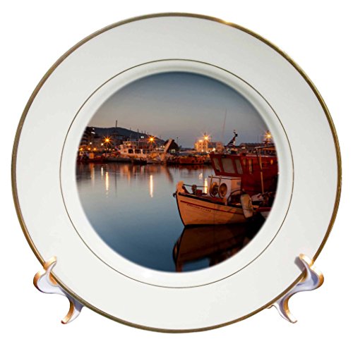3dRose cp_207221_1 Greece Thessaly Pelion Peninsula Volos Fishing Port Dawn Porcelain Plate, 8"