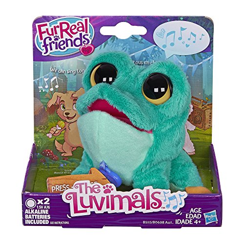 -. Binding : Toy -. Brand : Fur Real Friends -. EAN : 0630509370313 -. Feature : Loveable little pet / Press back for fun singing sounds and beats / Pet can sing with other The Luvimals pets (sold separately) / Includes pet and instructions. -. IsAdultProduct : 0 -. Label : Hasbro -. Manufacturer : Hasbro -. Model : B5115AS0 -. MPN : B5115AS0 -. PackageQuantity : 1 -. PartNumber : B5115AS0 -. ProductGroup : Toy -. ProductTypeName : TOYS_AND_GAMES -. Publisher : Hasbro -. Studio : Hasbro -. Title : FurReal Friends The Luvimals C.L. Ribbit -. UPC : 630509370313 -. Warranty : No Warranty