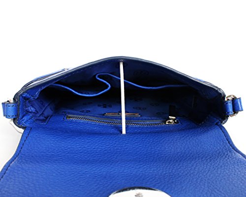 Flap with turn-lock closure, flat leather cross-body strap with 21" (57.3 cm) drop