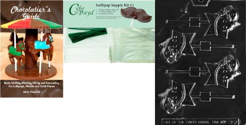 Cybrtrayd Mouse on Star Lolly Chocolate Mold with Chocolatier's Bundle of 25 Lollipop Sticks, 25 Cello Bags, 25 Green Twist Ties and Chocolatier's Guide