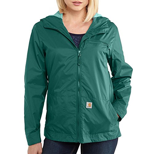 Studio : Carhartt Women's Collection Publisher : Carhartt Women's Collection Binding : Apparel Product Description Wear it alone or as a layering option. Constructed from 2-ounce, 100 percent nylon oxford, it offers rain defender durable water repellent, polyester mesh lining in body, taffeta lining in sleeves, an attached three-piece hood with draw cord adjuster, a chest pocket and snap adjustable cuffs. 0