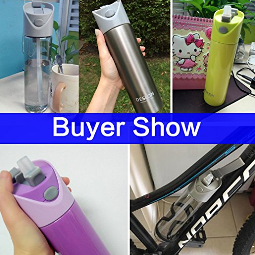 ★★ This sport water bottle with straw is fit for kids, girls, boys, women and men. The straw reaches all the way to the bottom, Flip, Bite and Sip. No tipping required (though possible: just remove the straw). The sprung latch that keeps your mouthpiece clean, press the button on the front, it springs open and the mouthpiece bottom is ergonomically shaped to easily push it back shut with a nice solid click.