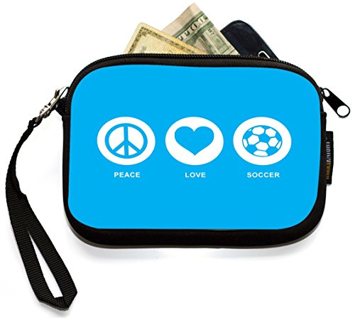 -. Title : UKBK Peace Love Soccor Sky Blue Neoprene Clutch Wristlet