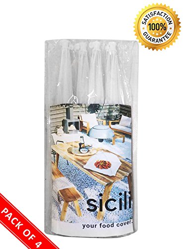 Sicili 16'x16' Food cover is your ideal option when it comes to avoiding undesired insects from contacting with your food or meals. With Sicili, there will be no more worries over food hygiene so you could enjoy your time with friends and family! Key product features: ? Sicili food cover effectively keeps unwanted flying insects/bugs away from your food, suitable for your kitchen or any outdoor activities, parties or picnics ? Each food cover set has 4 food tents with dimensions of 16' (length) - 16'(width) - 11'(height) that could accommodate large bowls or plates. The double-lace band extension on each side of the food tent leaves no room for insects to get in ? Simple to function and easy to be washed or cleaned for next usage ? Save space for storage and portable, ideal for any trips Add this to your shopping cart and experience the satisfaction that this Food cover brings to you with our product quality guarantee! We are happy to send a replacement should you have any problem with the product to make sure you have the best experience possible. 0