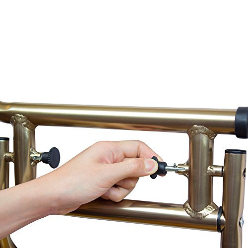- Feature : Rail extends out to 20.3 inch above the base and folds down out of the way when not in use / Rail extension can be adjusted from 19.7 to 27.5 inch with the push of a button / Safety strap is included to ensure maximum safety while in use / Made of lightweight aluminum material, weight capacity at 250 pound / When extended, please do not lean your whole weight on the tip of the rail as tipping may happen