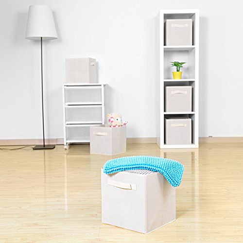 MaidMAX Cloth Storage Cubes Bins Baskets with Dual Handles for Home Closet Nursery Drawers Organizers, Flodable, Black, Set of 6