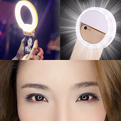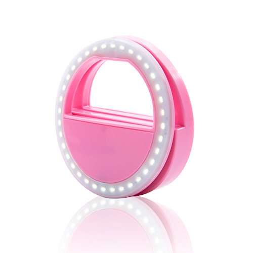SAVFY Clip on Selfie Ring Light with 36 Led Bulbs for iPhone, Samsung and All the Smart Phones Camera Round Shape, Pink