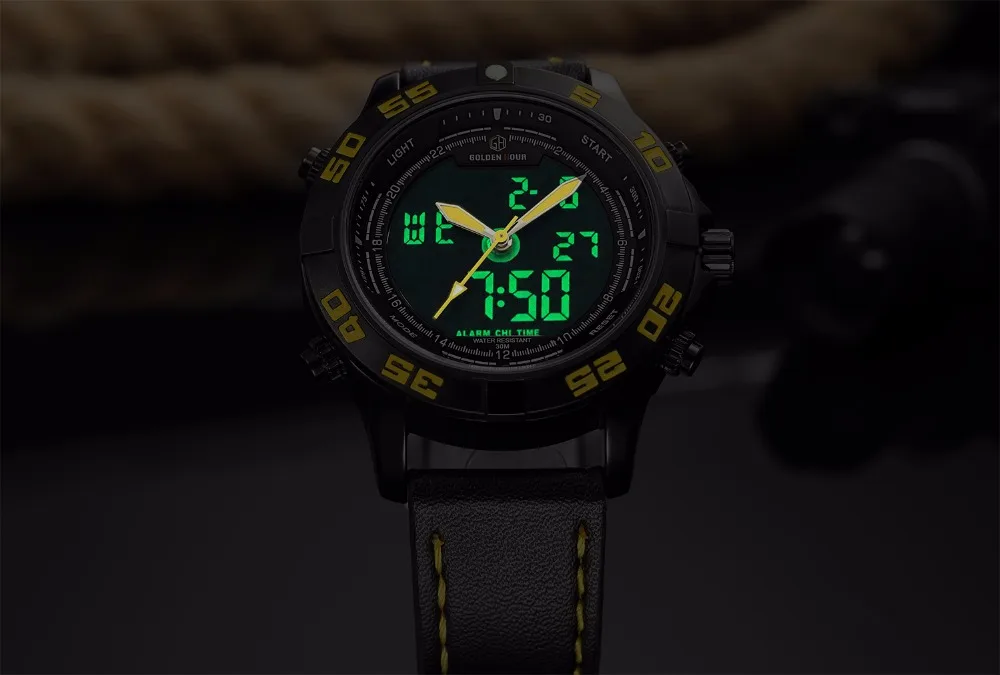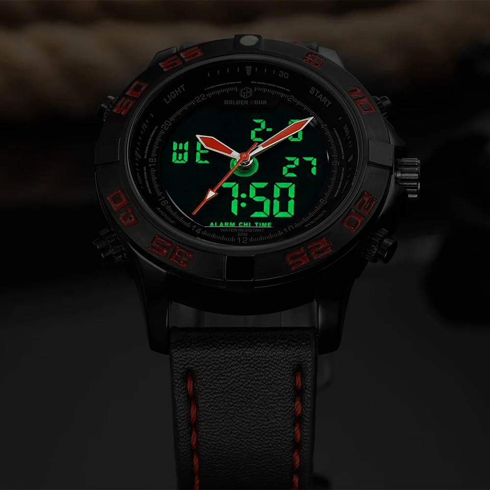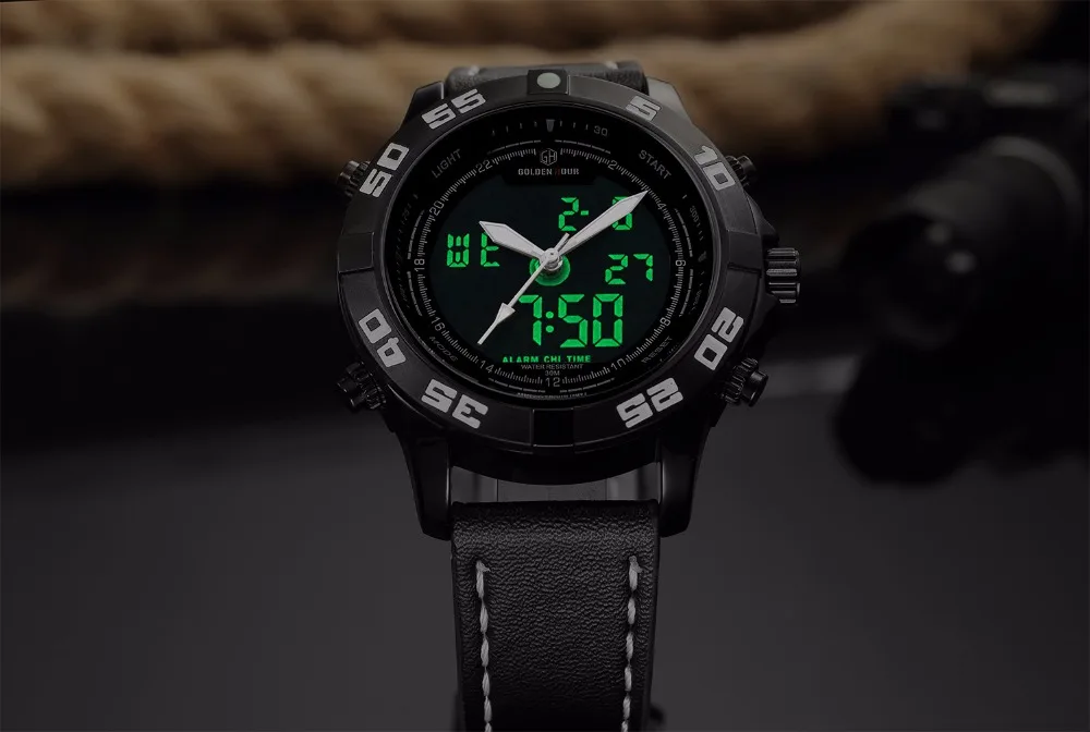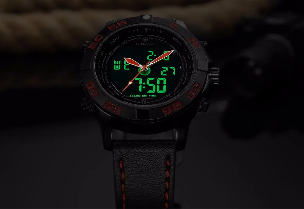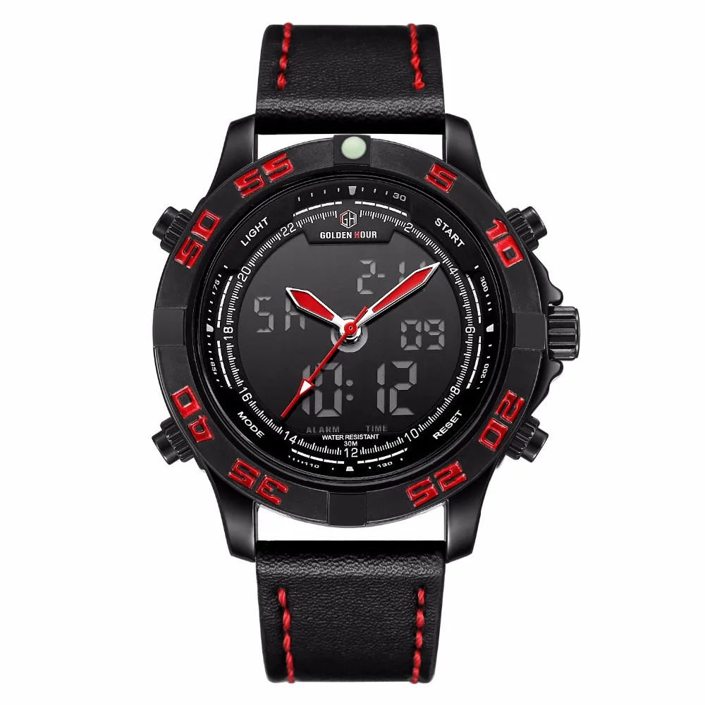 Feature:Complete Calendar,Shock Resistant,Luminous Hands,Stop Watch,LED display,Auto Date,Week Display,Water Resistant,Back Light,Chronograph,Alarm,Luminous,Perpetual Calendar