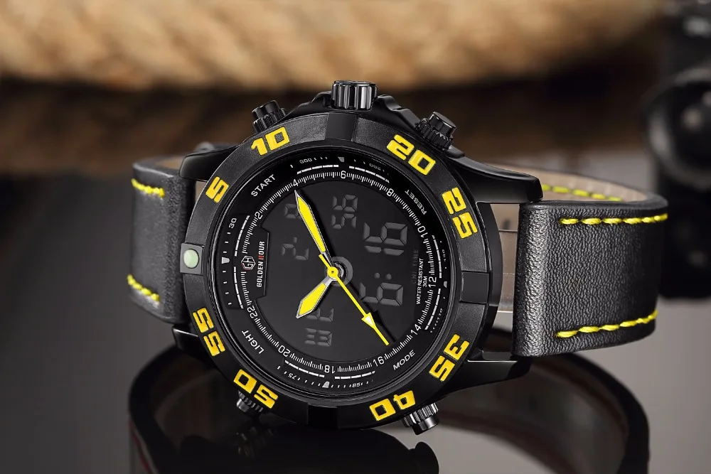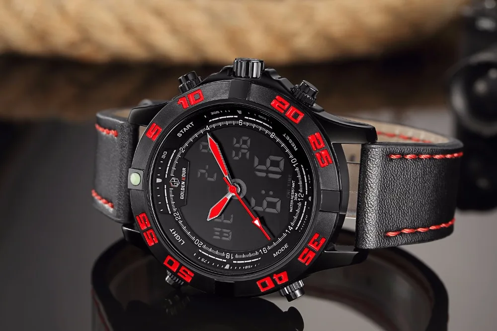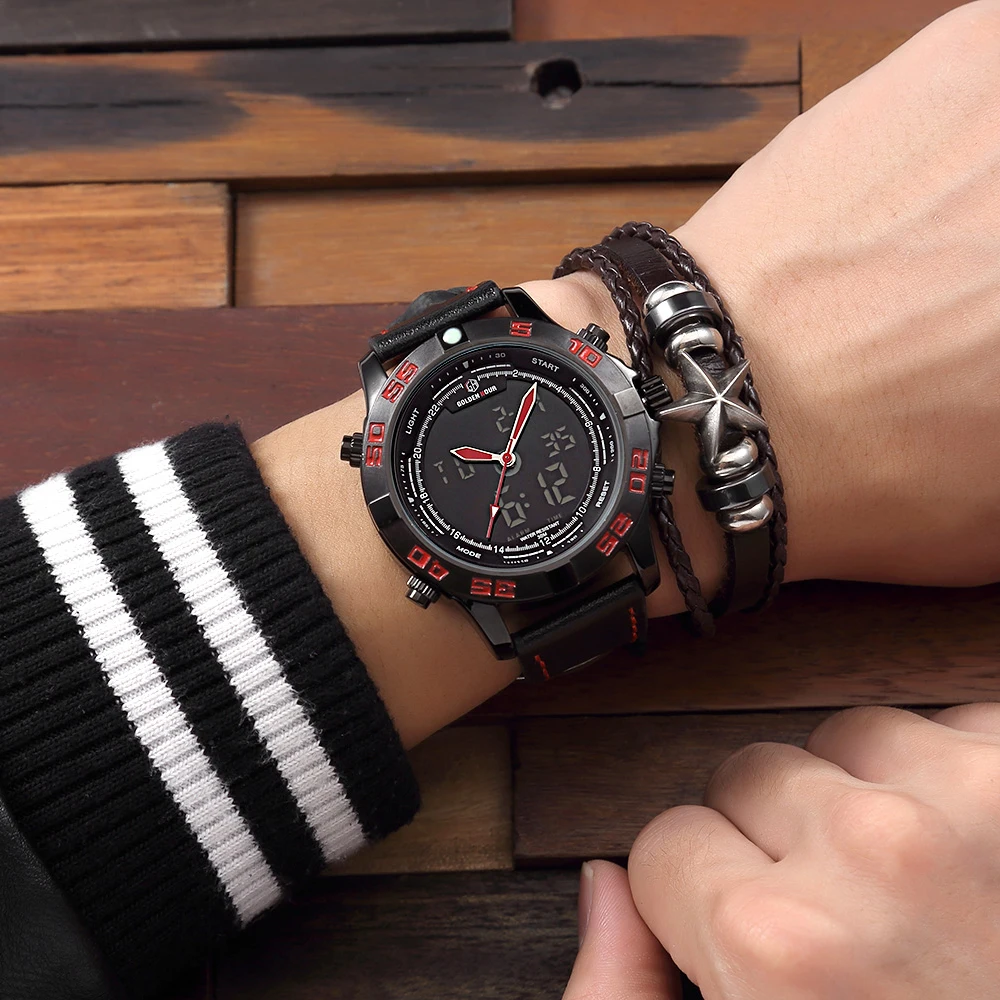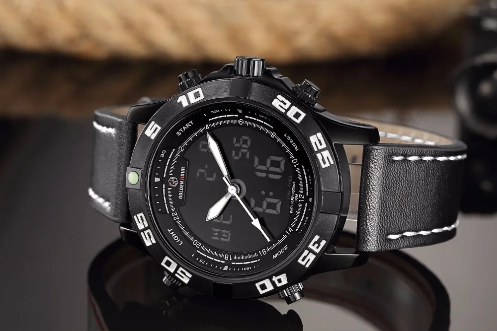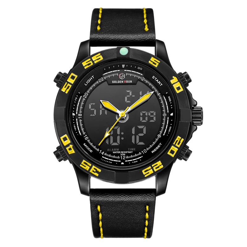 Feature:Complete Calendar,Shock Resistant,Luminous Hands,Stop Watch,LED display,Auto Date,Week Display,Water Resistant,Back Light,Chronograph,Alarm,Luminous,Perpetual Calendar