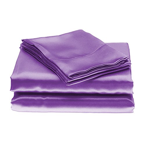 HOLIDAY SALE Evolive Silky Smooth Luxury Bed Satin Sheet Set(Full, Purple)