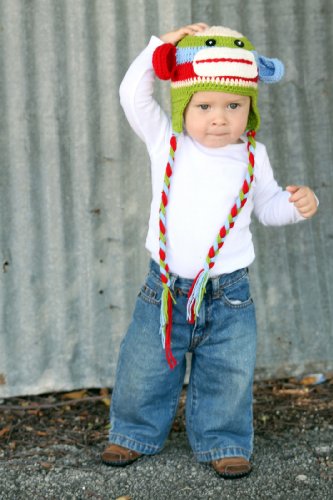 -. Title : Milk protein cotton yarn handmade boy rainbow sock monkey hat - fits 0 to 6 months