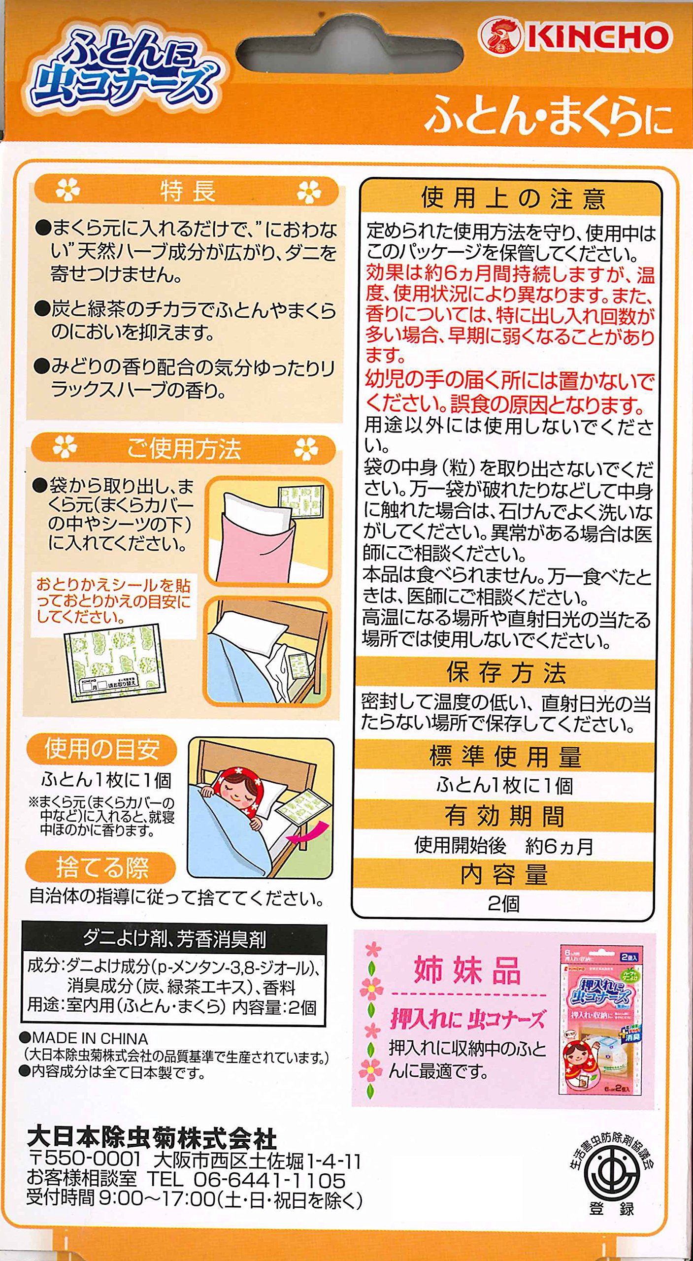 "Insect Connor's Futon is a Bug Conner's Relaxing Herb Scent for Two Weeks for 180 Days" is an insect repellent (for futon) for futons and pillows.