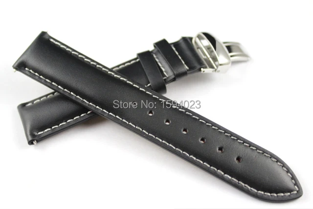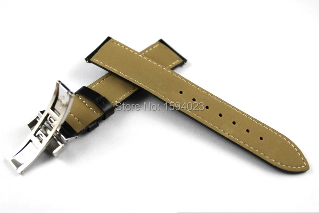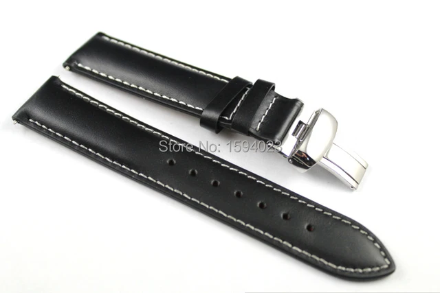 | [해외]19 미리메터 (Buckle18mm) PRC200 T014410 T461 T41 높은 품질 실버 나비 버클 + 블랙 정품 가죽 시계 밴드 스트랩 |