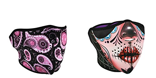 -. Title : Bundle (2 Items): 1 ZanHeadgear 'Purple Paisley' Half Face Neoprene Face Mask -AND- 1 Zan 'Sugar Skull' Half Face Neoprene Face Mask, Ski Mask