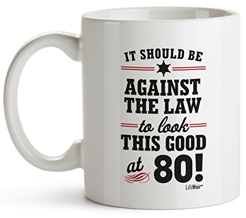 -. Feature : Superior Quality, Made of High Grade White Orca Ceramics, Dishwasher and Microwave Safe for Your Convenience / Custom Designed Coffee Mug, Proudly P.R.Inted in the USA on Both Sides / Hilarious, Fun, and Happy White Coffee Cup Sure To Please Every 80-Year-Old Person / This Fantastic Gift Can Be Jazzed Up Even More by Placing Additional Gifts Inside, Such as Stickers, Magnets, Candies and Chocolates, or Coffee Grounds and Tea Bags. / The Premium Full color Sublimation ImP.R.Int Creates a Vibrant, Long Lasting, and Lead-Free Design For Your Safety