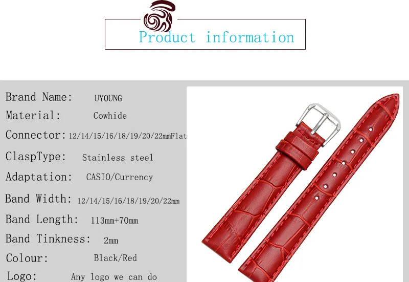 품질 가죽 손목 12 미리메터 14 미리메터 15 미리메터 16 미리메터 18 미리메터 19 미리메터 20 미리메터 22 미리메터 레드 스트랩 카시오 시계 액세서리