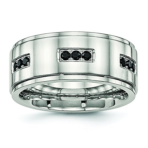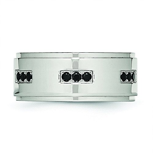 -. Binding : Jewelry -. Brand : Chisel -. Department : womens -. Feature : Fine jewelry is authenticated with manufacturer metal stamp / Unconditional 45 day Full Money Back Guarantee and Two Year Free Repair Policy / Comes with a beautiful jewelry gift box ready for any gift giving occasion -. Label : JewelryWeb -. Manufacturer : JewelryWeb -. Model : XQGOSR585 -. MPN : XQGOSR585 -. PartNumber : XQGOSR585 -. ProductGroup : Jewelry -. ProductTypeName : FASHIONRING -. Publisher : JewelryWeb -. Studio : JewelryWeb -. Title : 9mm Stainless Steel Polished Ridged Edged Black CZ Ring - Ring Size Options: 10 10.5 11 11.5 12 12.5 13 13.5 14 8 8.5 9 9.5