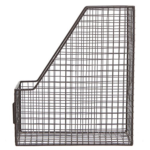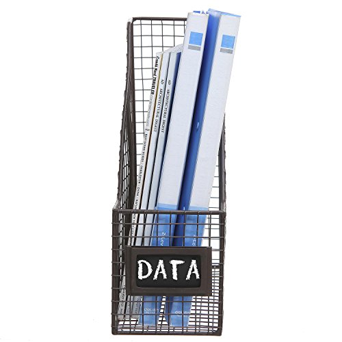 Brown Mesh Wire Metal Magazine Rack / Mail Holder / Document File Folder Storage Basket w/ Label Holder