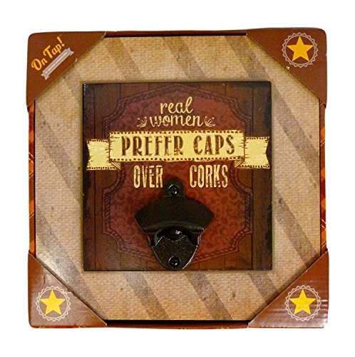 Wall Mounted Beer Bottle Opener Wooden Plaque Bar Sign Real Women Prefer Caps