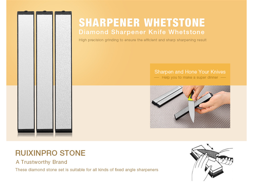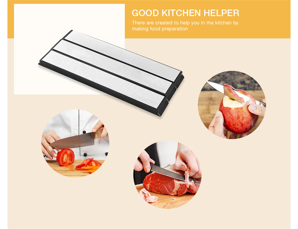 Cutting or preparing food is a downright chore when your knife is dull. But when your knife is razor sharp, you can cut through meat, tendon and even bone as if they were butter. These 3 pieces sharpener whetstones are created to help you in the kitchen by making food preparation, as well as eating, much easier and more enjoyable.