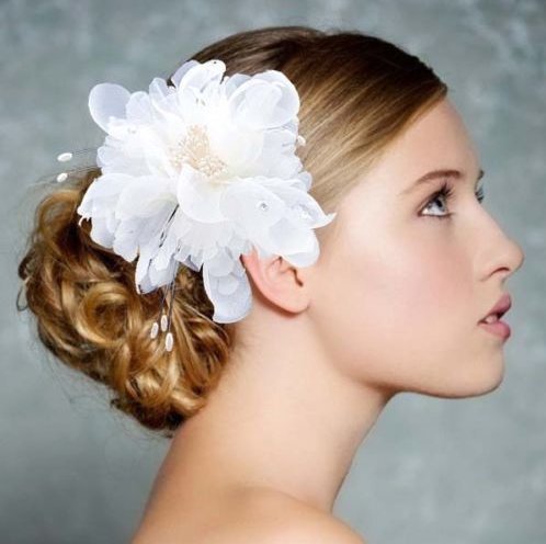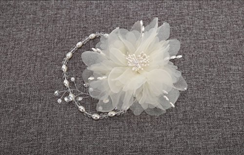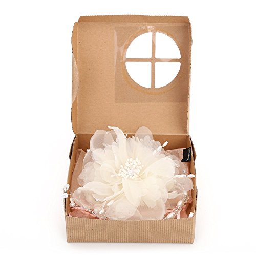 KimmyKu Handmade Beautiful Fashion Wedding Party Ivory Cream White Big Flower Rhinestone Crystal Pearl Beads Fascinator Flower Hair Clip Headband Headpieces For Bridemaids Bridal Bride Maid of Honour Dance Wedding Party Recital Pageant Flower Girl