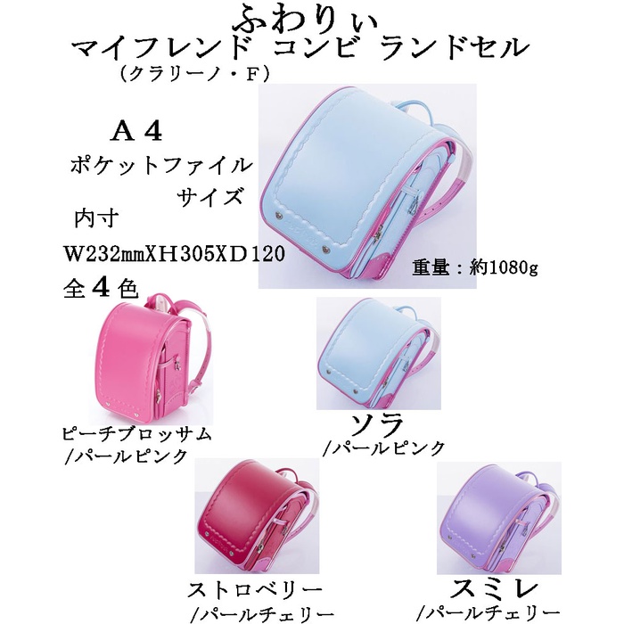 원본상품명: ランドセル?量1080g2018年 ふわりぃオリジナル クラリ?ノF コンビカラ? ランドセルA4PF15800ベストヒットランドセルランドセルmy friendコンビRCP?量ランドセルランドセル ふわりぃランドセル女の子日本製