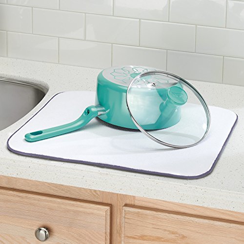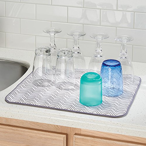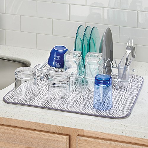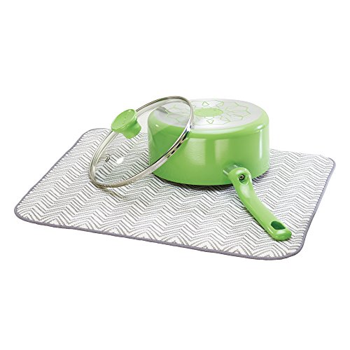 Studio : InterDesign Publisher : InterDesign Binding : Kitchen Product Description The InterDesign iDry Mat is an absorbent kitchen companion that catches drips from underneath your dish rack, keeps the counter from being scratched, and cushions your stemware and dishes. Protect your counter with this dish drying mat. 0