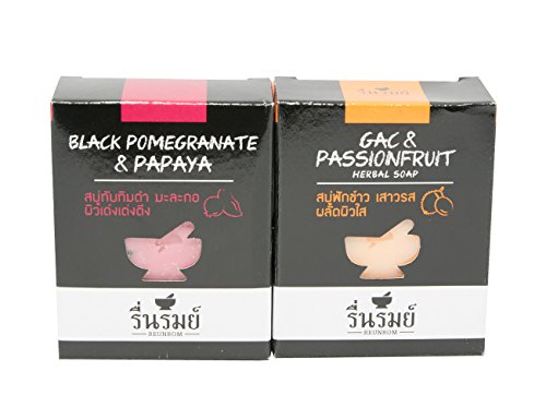 SET REUNROM GAC & PASSIONFRUIT + BLACK POMEGRANATE & PAPAYA HERBAL NATURAL BATH & BODY BAR SOAP BRIGHTENING WHITENING SOFT SMOOTH SKIN
