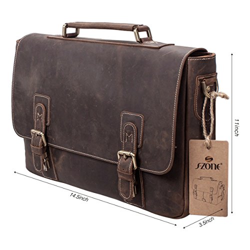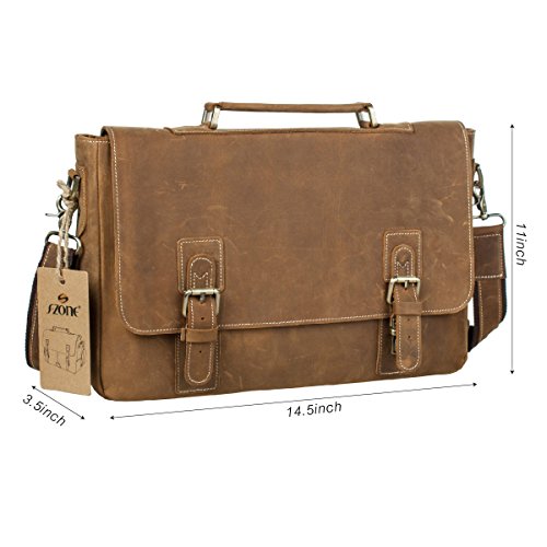 Studio : S-ZONE Publisher : S-ZONE Product Description Description Product Dimensions:11(H)*15(L)*3.5(W)inch,2.6pounds, Oversize: 12(H)*16(L)*3.5(W)inch Product Structure External structure: - 1*main zip-away pocket - 1*back zip-away pocket - 1*adjustable canvas shoulder strap Internal Structure: - 1*small zipper Pocket - 1*Large zipper Pocket - 1*Large compartment Attention: 1. Thanks to the manufacturing process and the natural smell of leather, the package you receive may has a little bit smell. You can open the package and put it at a ventilated place for few hours, the smell will fade away gradually. 2. The most significant feature about Crazy Horse Brand bull leather is disordered scratches on the surface, which is the style of retro and wildness. However the leather has high quality, it is unavoidable to have small scratch on it. The leather will looks better, if you use hand to wipe it gently. 4. Since the manufacturing process of Crazy Horse Brand bull leather, the color maybe a little bit different of each bag, please be aware of this and confirm with our customer service before you purchase. Thank you for purchasing from us! 0