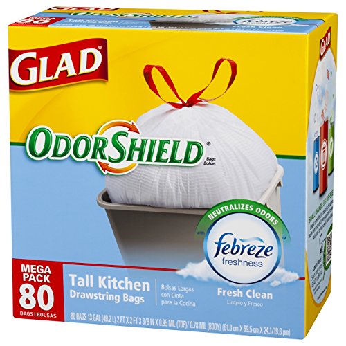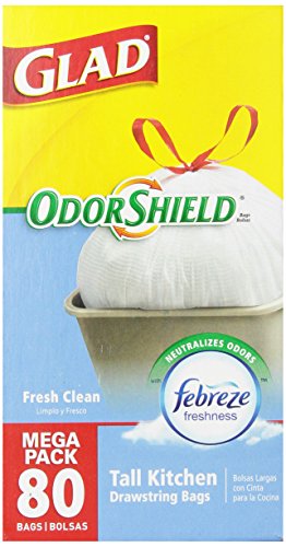 - Title : Glad OdorShield Tall Kitchen Drawstring Trash Bags, Fresh Clean, 13 Gallon, 80 Count