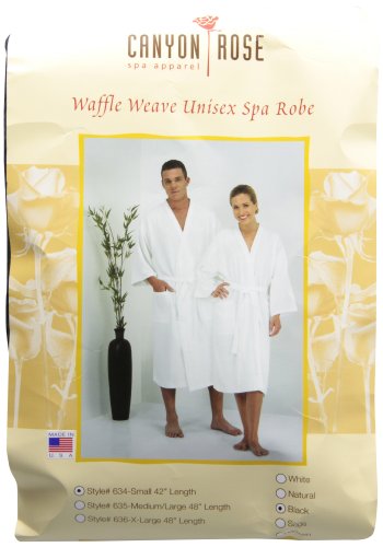 Canyon Rose Unisex Waffle Weave Spa Robe, Black, M/L