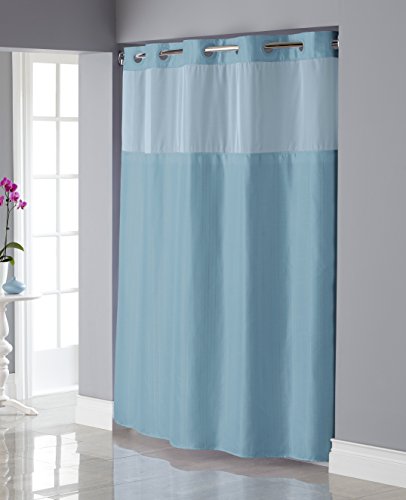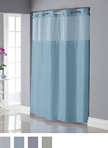 Hookless RBH34MY837 Shiny Texture Herringbone Shower Curtain with Snap-In PEVA Liner - Crystal Blue