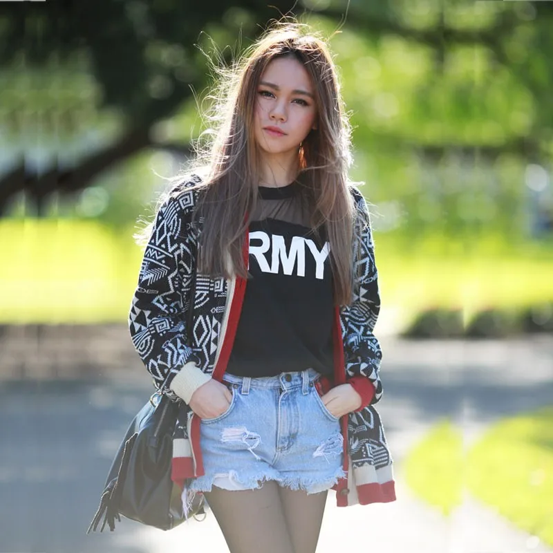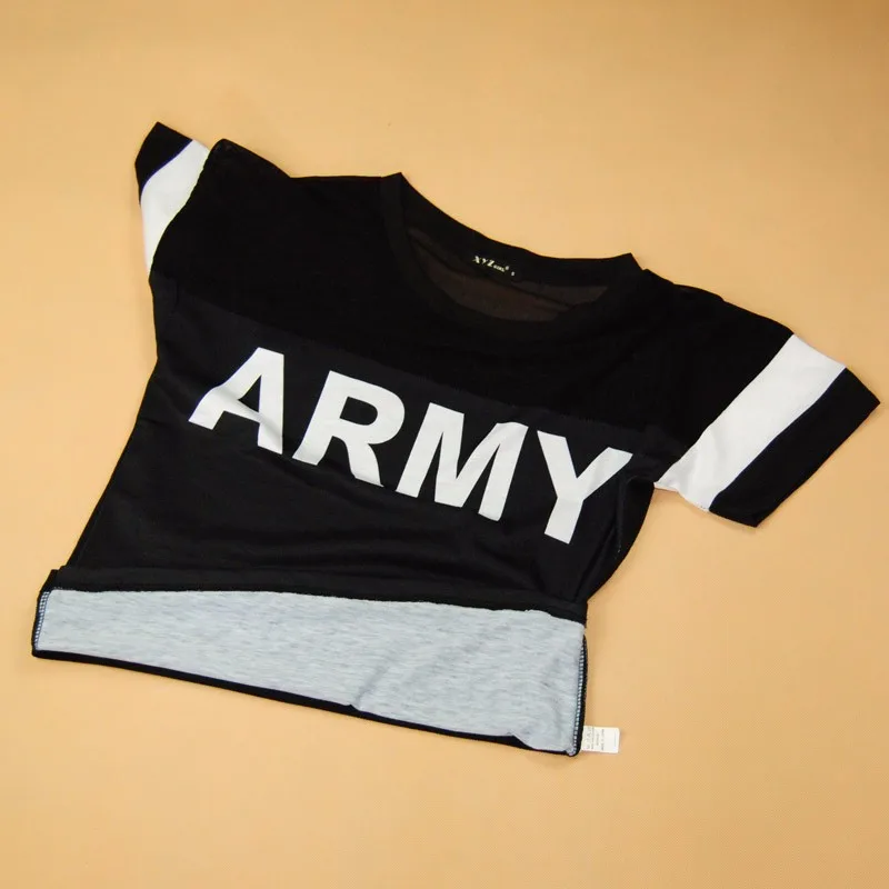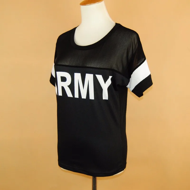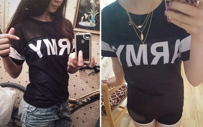 Korean Harajuku T Shirt Women 2017 Casual Black Mesh Punk Rock ARMY Print Vogue T-Shirts Female Kawaii Tops for Women Clothing